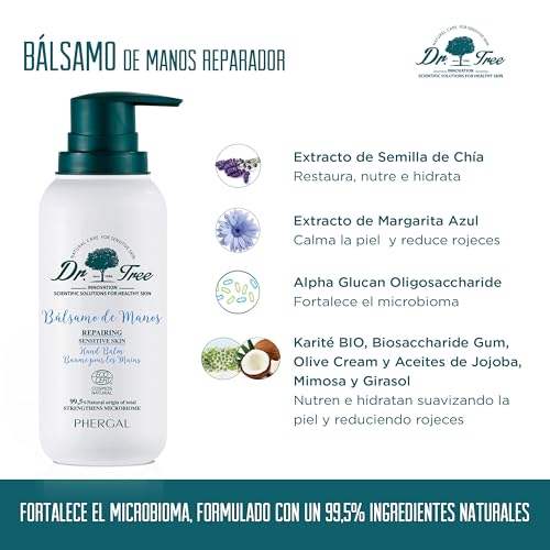 Dr. Tree Bálsamo De Manos Reparador, Nutre, Hidrata y Protege, Pieles Sensibles, Airless, 99,5% Ingredientes Naturales, Sin Sulfatos SLE, SLS, Sin parabenos, Sin siliconas, ECOCERT, 200ml